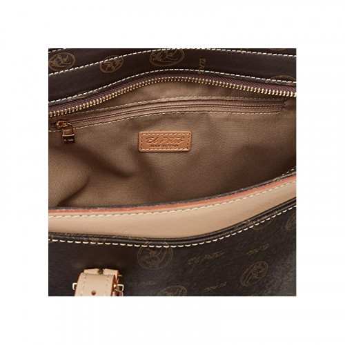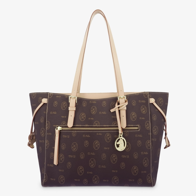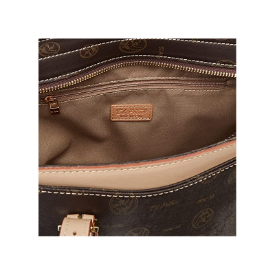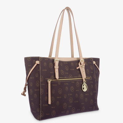 Bolso shopper de lona marrón y piel cuero con logos-EL POTRO
