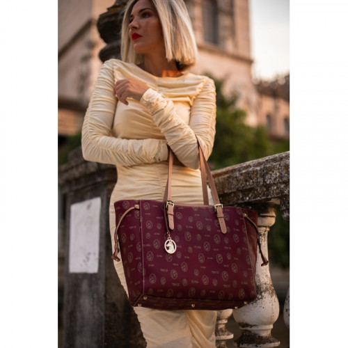 Bolso tote mujer lona y piel vacuno color burdeos-El Potro