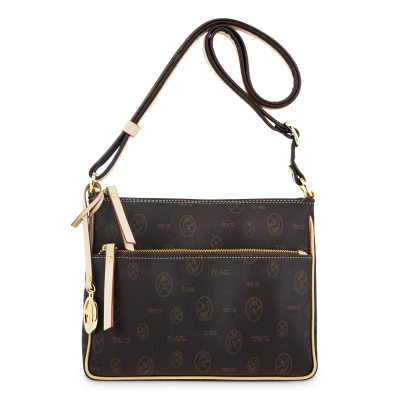 Bolso Bandolera mediano EL POTRO perteneciente a la colección Vintage, fabricado en UBRIQUE en lona y piel vacuno color marrón oscuro. Asa de colgar al hombro y bandolera Cierre principal de cremallera, bolsillo de cremallera en la parte frontal y trasera .Interior con forro textil y bolsillos. Herrajes color Dorado. Incluye bolsa protectora.